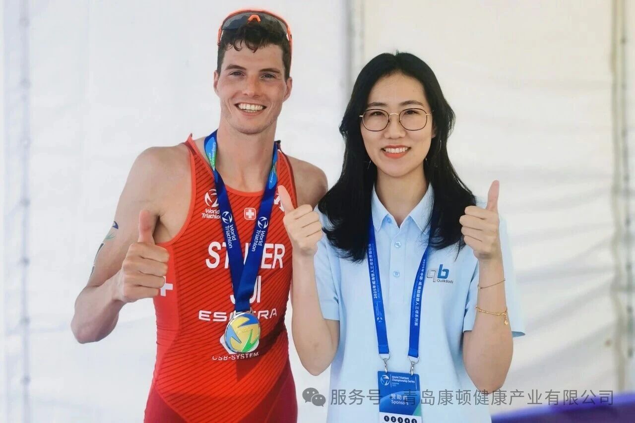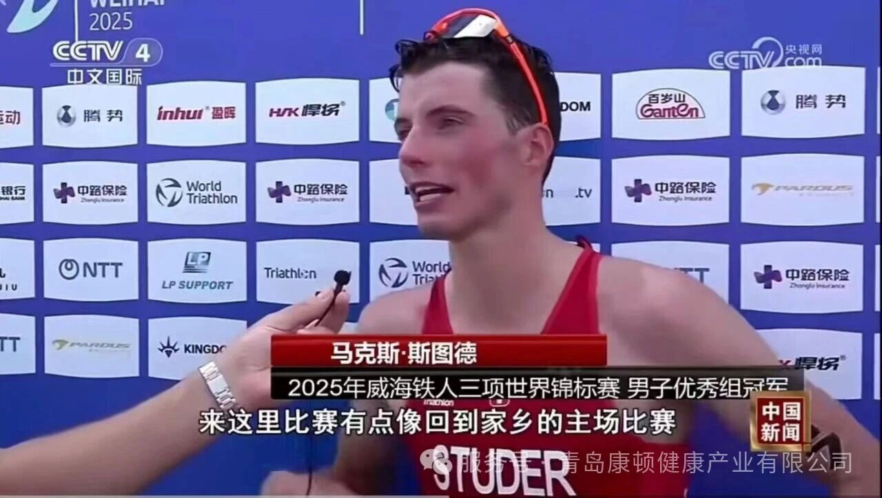 Swiss athlete Max Studer, Men's Elite Champion, in an interview with reporters (CCTV News).